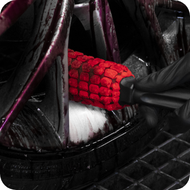 Bezdotykowe usuwanie brudu z felg za pomocą Iron Terminatora jest możliwe w przypadku felg zabezpieczonych lub regularnie pielęgnowanych. Jeśli osady na felgach są mocno utrwalone, zalecamy użycie pędzla lub szczotki Kamitore.